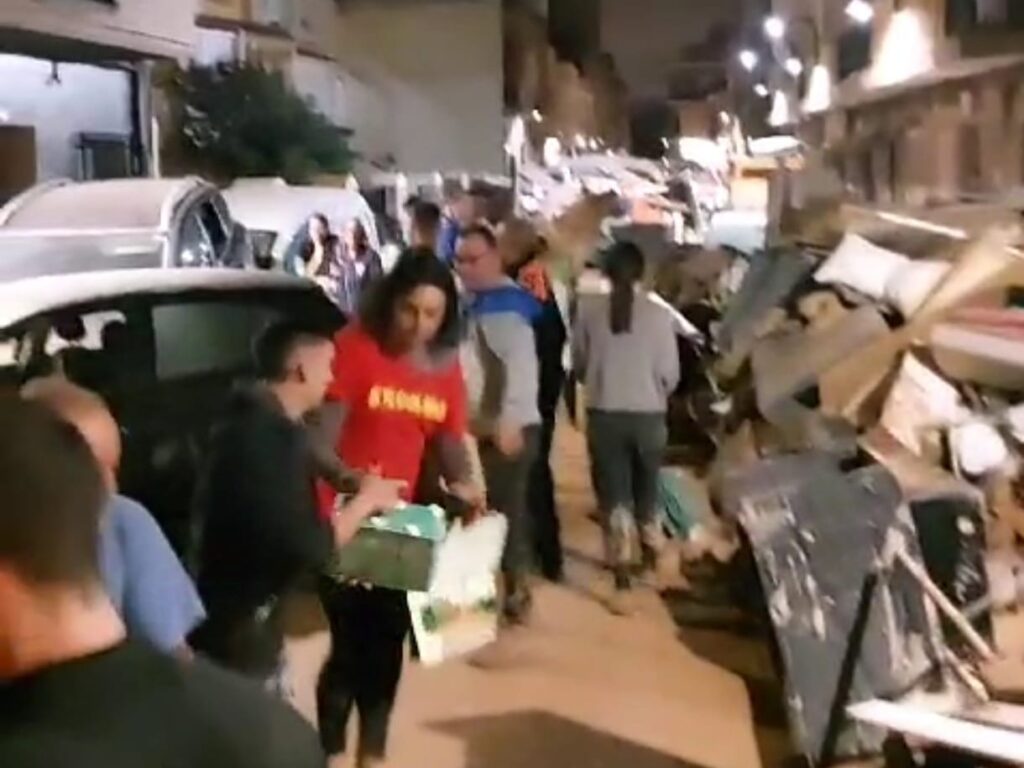 La respuesta de los vecinos no se hizo esperar, y a las doce del medio día partía hacia Valencia, concretamente al municipio de Aldaia, una furgoneta con Carlos y Marta, vecinos de la villa, como voluntarios, que a las 8 de la tarde, ya estaban repartiendo el cargamento, principalmente galletas, leche y agua, entre los vecinos de esta localidad valenciana.