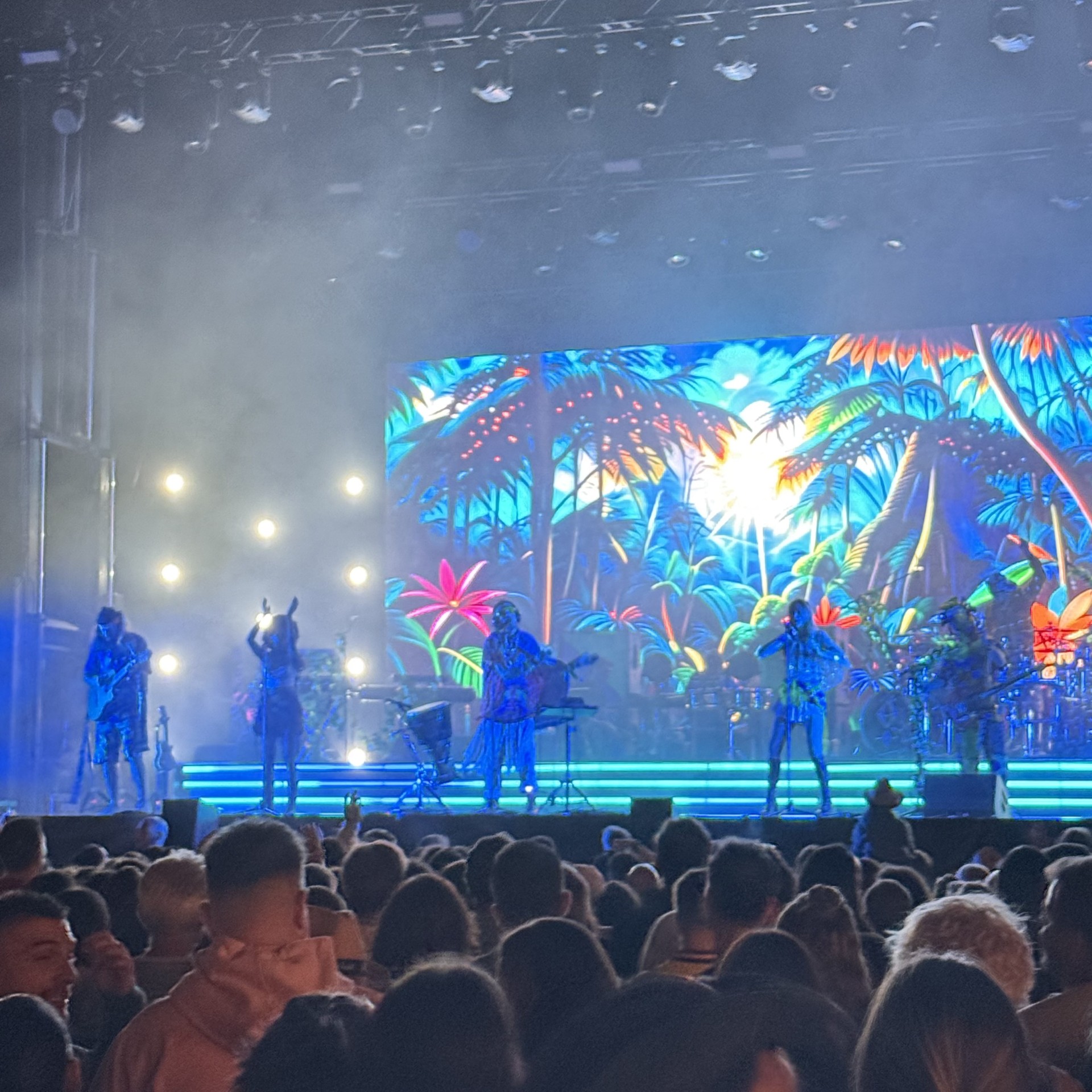 Ya por la tarde, el escenario principal cobró vida con la frescura de Besmaya, preludio de una de las actuaciones más esperadas: Iván Ferreiro, que conquistó al público con un repertorio cargado de emoción e himnos coreados a pleno pulmón. El momento culminante de la jornada llegó con Crystal Fighters, que transformaron Ezcaray en una pista de baile bajo las estrellas, con un espectáculo arrollador que puso a bailar a miles de asistentes.