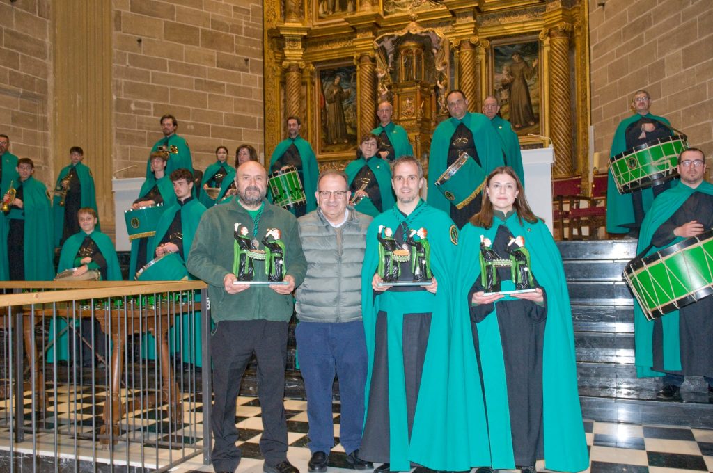 Uno de los momentos más destacados de la velada fue el reconocimiento especial a Antonio Capellán, fundador y coordinador de la Banda. Suárez destacó su implicación constante, subrayando que es “quien siempre está dispuesto a echar una mano en todo lo que se le propone, de manera callada y discreta, y hoy queremos agradecérselo y reconocérselo públicamente”. Como muestra de agradecimiento, el abad hizo entrega a cada integrante de la Banda de una pieza artesanal que representa a un músico tocando el tambor, obra del artista Jose Gonçalves. Además, Antonio Capellán y los responsables de las dos secciones de la agrupación, Rebeca Capellán y Alberto García, recibieron dos figuras artesanas adicionales que simbolizan a un músico tocando la corneta y otro el tambor.